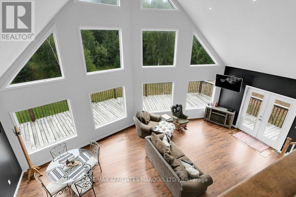 Client RemarksThis stunning private A-frame home blends character, comfort, and seclusion in a truly unique setting. Soaring cathedral ceilings fill the interior with light, while the walk-out basement with heated floors offers both warmth and additional living space. The primary bedroom features a walk-in closet, a 3-piece ensuite, and its own balcony, the perfect spot for your morning coffee. With no rear neighbours and no neighbours in sight, youll enjoy complete privacy surrounded by nature. A peaceful creek winds through the property, adding to the tranquil atmosphere. The oversized two-car garage with loft provides ample storage or workshop potential, and the wrap-around deck invites you to relax, entertain, or simply take in the views. Whether you're seeking a cozy retreat or a year-round residence, this one-of-a-kind home is ready to welcome you. (id:37684)
